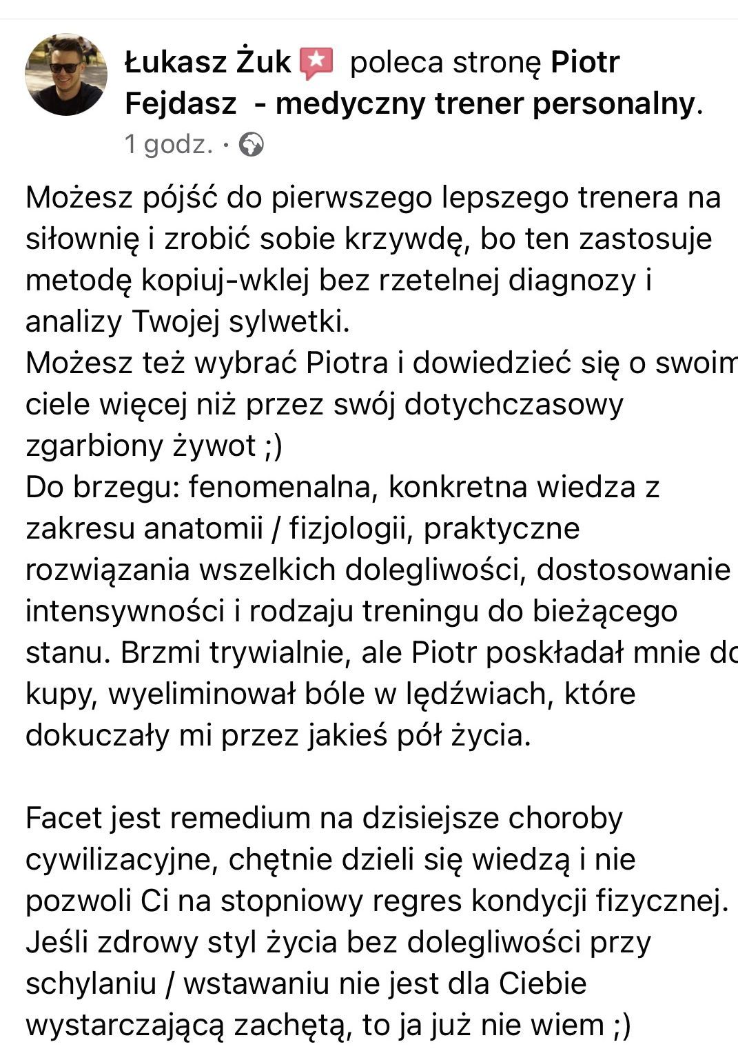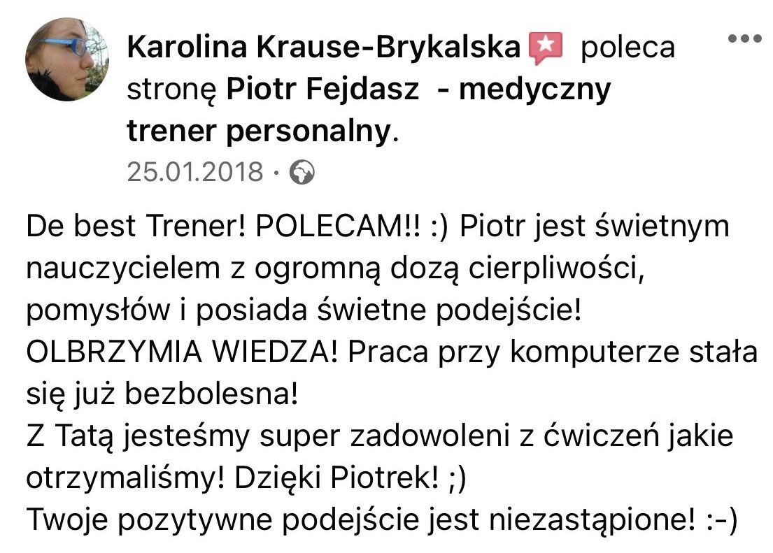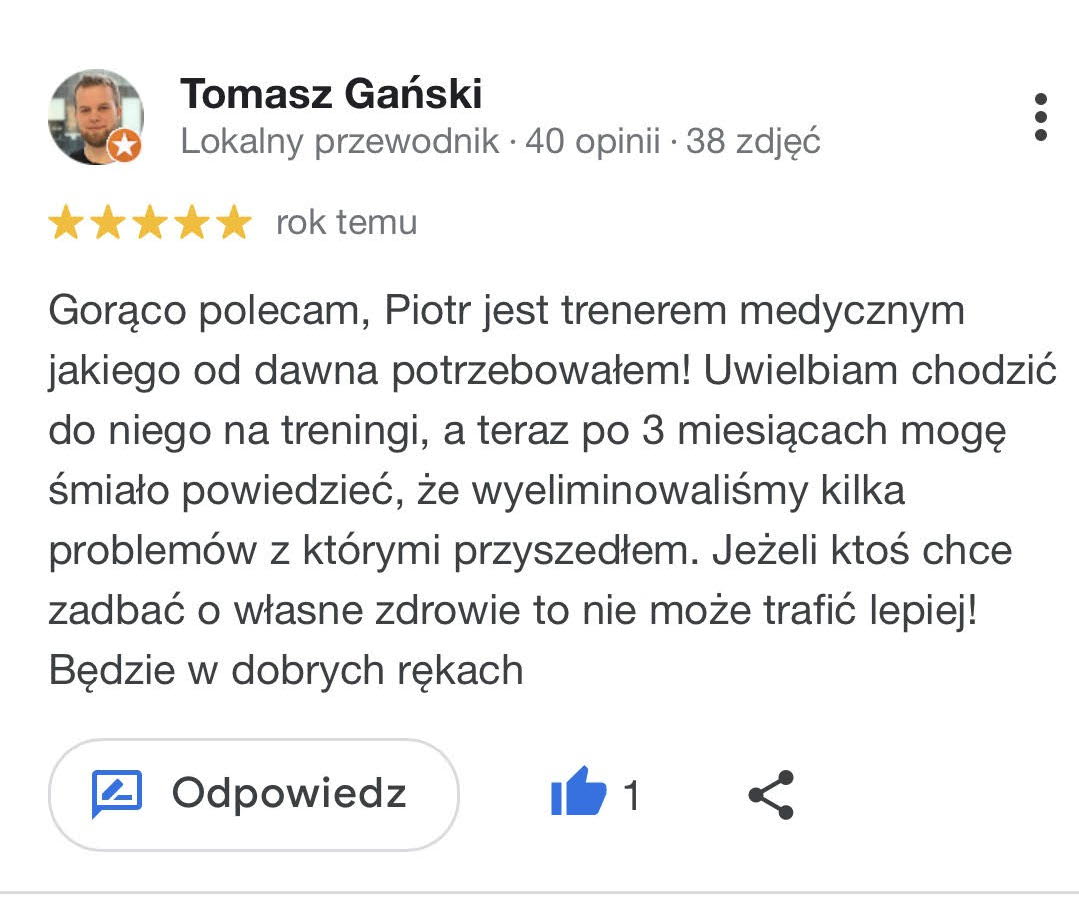 Gorąco polecam, Piotr jest trenerem medycznym jakiego od dawna potrzebowałem!