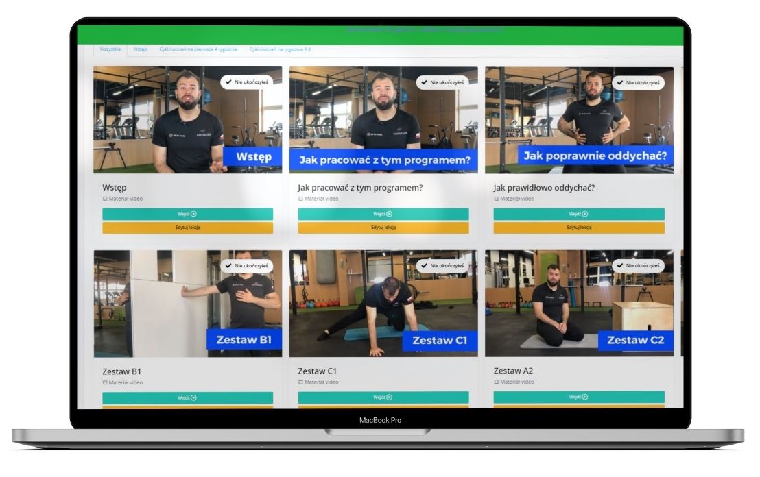 ✅ Każdy zestaw ćwiczeń otrzymujesz w filmu, w którym krok po kroku pokaże Ci jak robić każde ćwiczenie prawidłowo technicznie